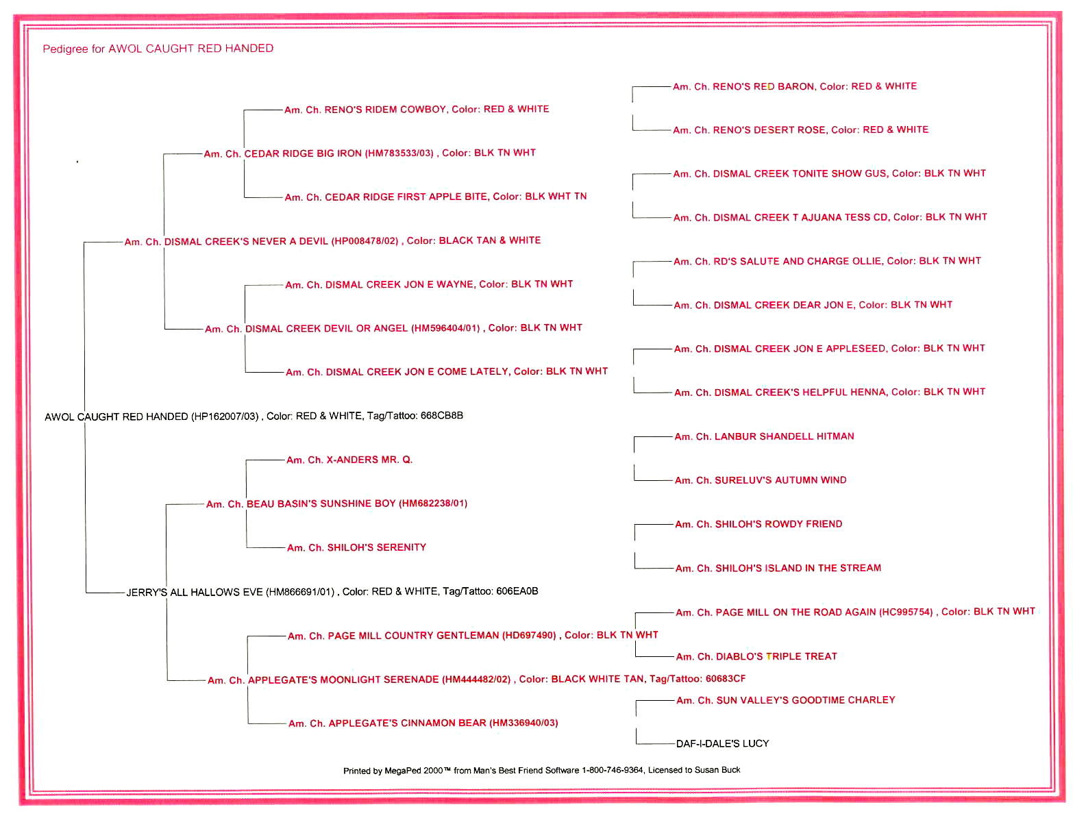 Pedigree of CH AWOL CAUGHT RED HANDED